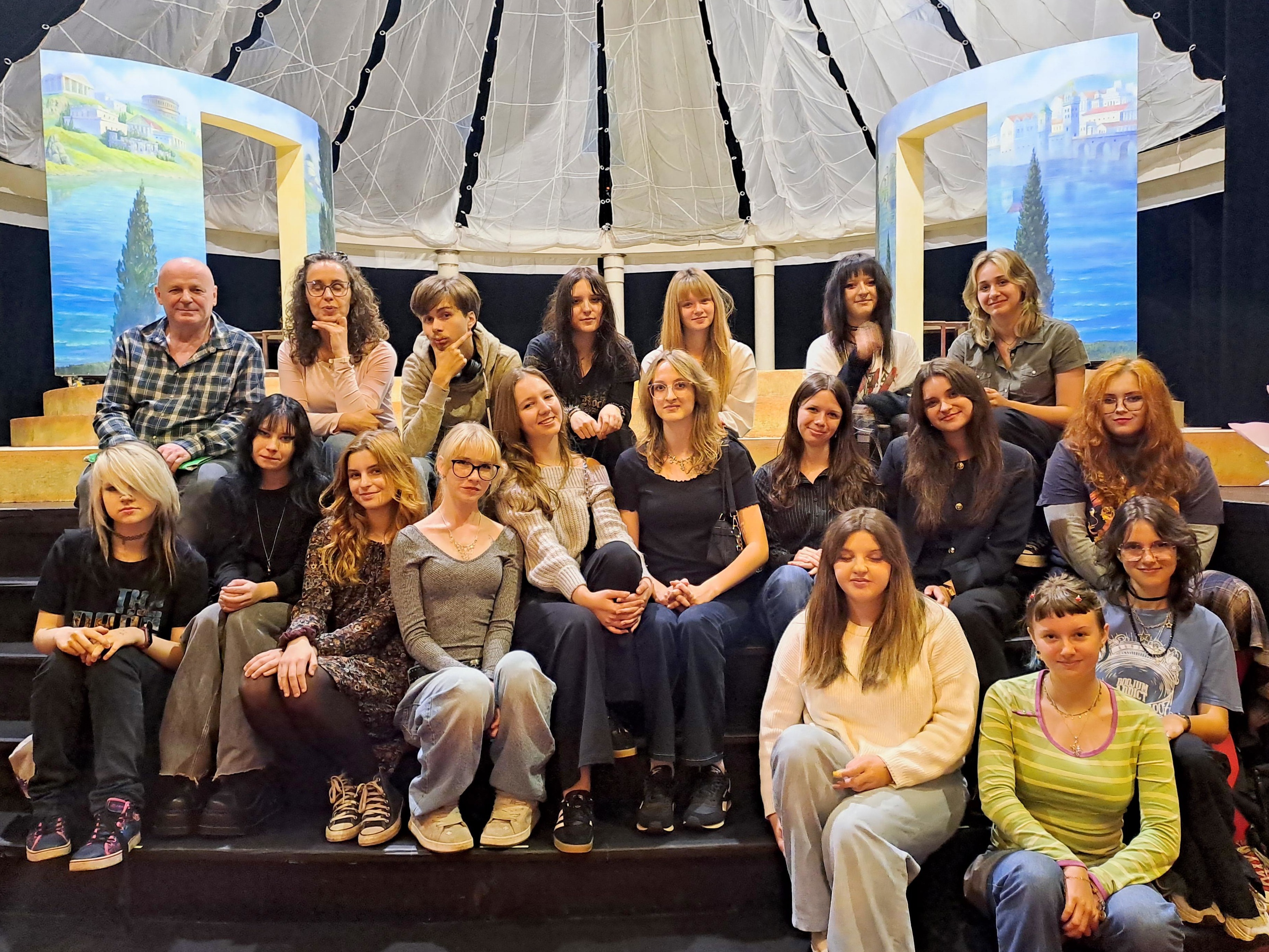 Młodzież zwiedziła wszystkie najważniejsze miejsca w teatrze – od sceny, przez kulisy, aż po garderoby i zaplecze techniczne. W trakcie spotkania poznali także historię teatru, jego zespół aktorski oraz codzienne wyzwania, z jakimi mierzą się artyści. Wojciech Dobrowolski, aktor związany z Osterwą od 1982 roku, opowiadał o blaskach i cieniach pracy scenicznej, dzieląc się anegdotami z życia teatru.