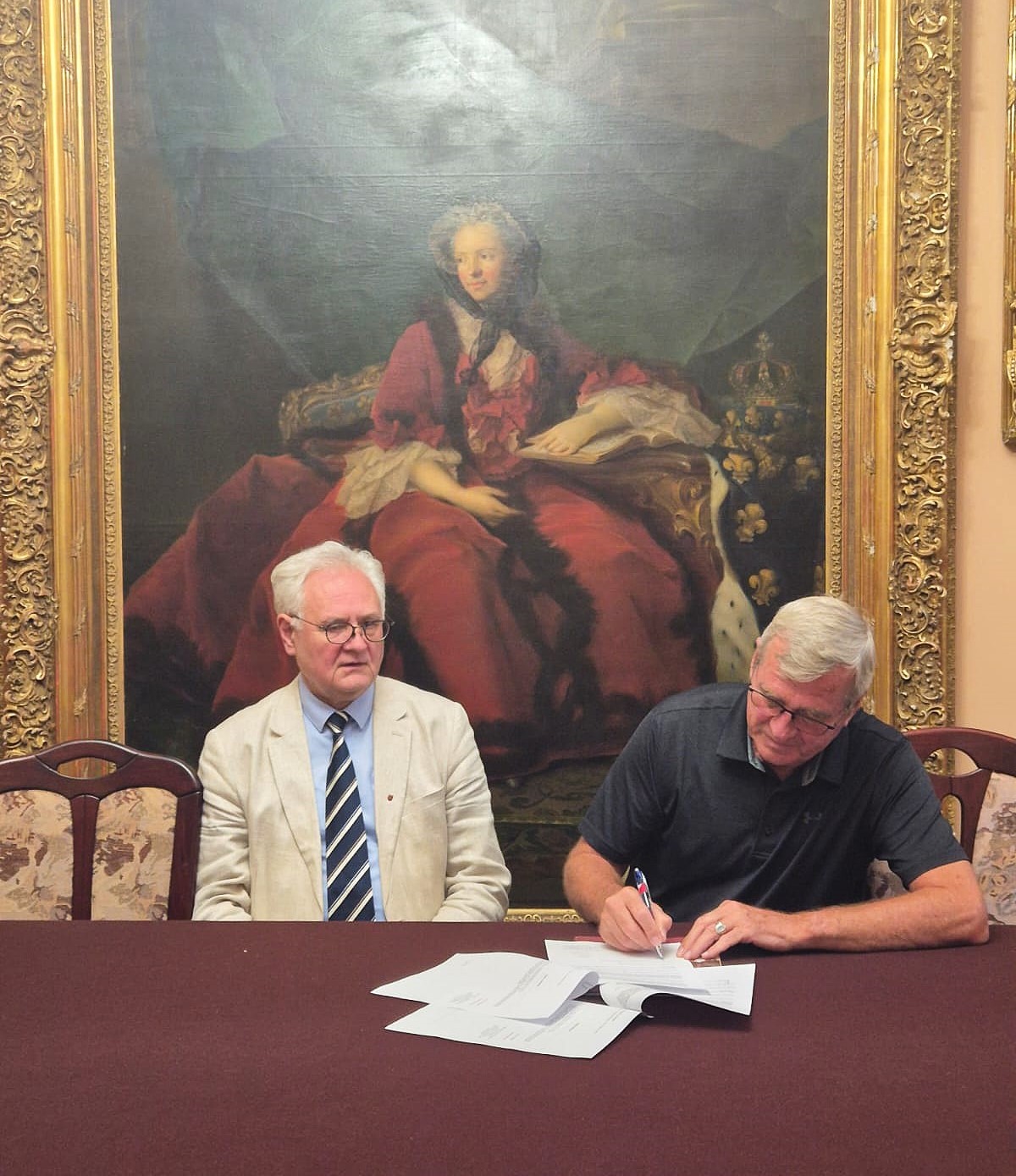 Podpisanie protokołu darowizny przez Pana Andrzeja Belinę Brzozowskiego i Pana Andrzeja Pruszkowskiego, Dyrektora Muzeum