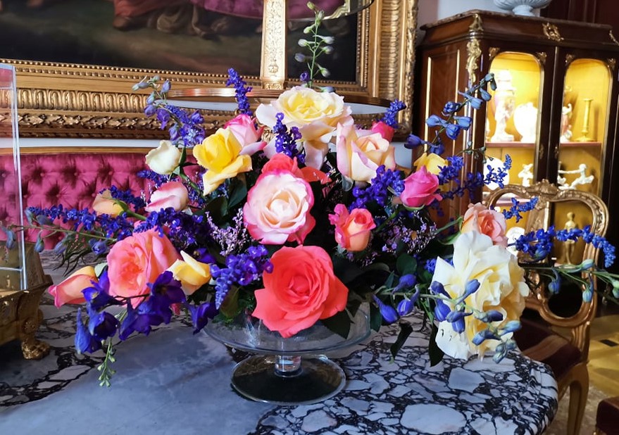 - Kompozycja kwiatowa w Salonie Białym pałacu kozłowieckiego wykonana przez florystkę Muzeum Zamoyskich w Kozłówce, Karolinę Bogusz, sierpień 2022