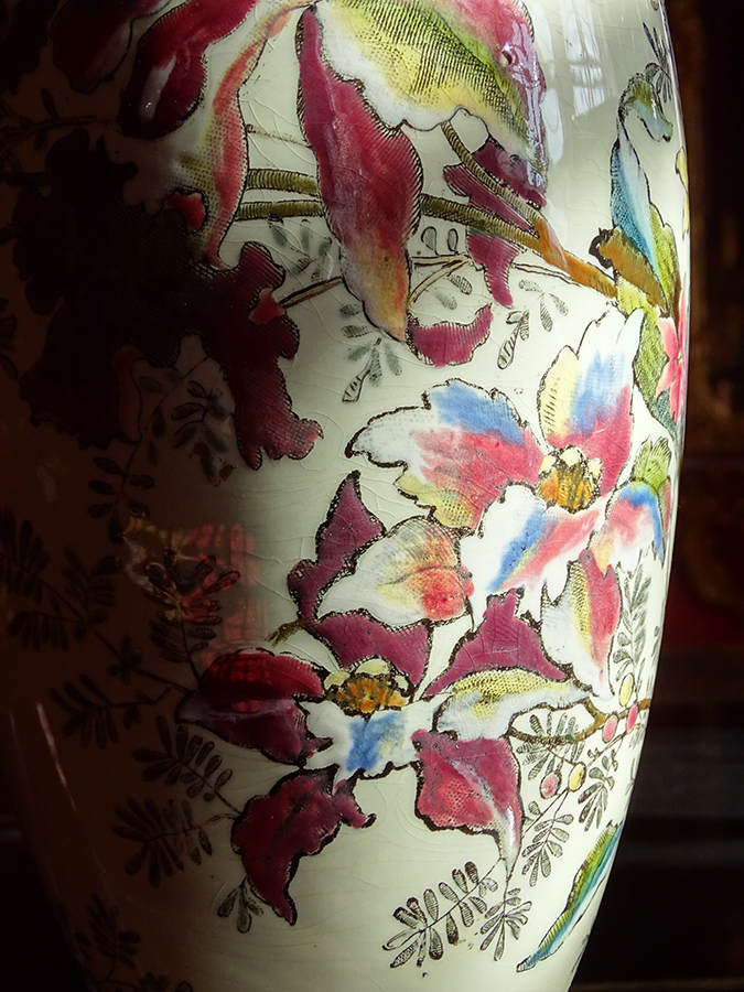 Fragment korpusu lampy, Francja, Bayeaux – Valentine (?), 2. połowa XIX wieku; porcelana, szkło, farby naszkliwne, mosiądz; nr inw. MPK/CS/2212