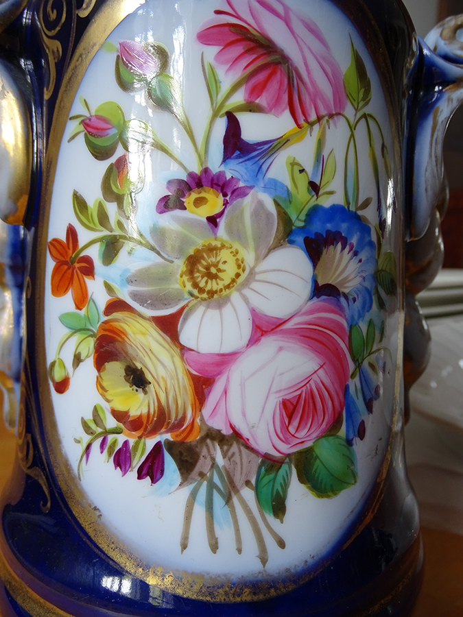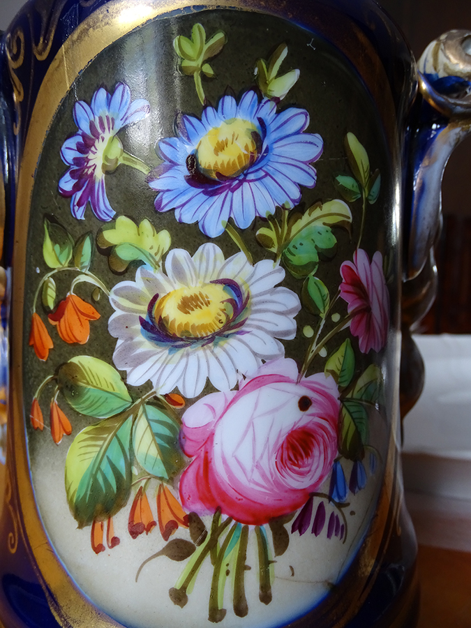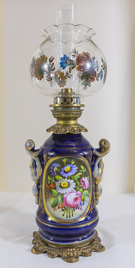 - Lampa naftowa; korpus: Arita, Japonia, porcelana; palnik: Ehrich und Greatz, Berlin, Niemcy, mosiądz; 2. połowa XIX wieku; nr inw. MPK/CS/458