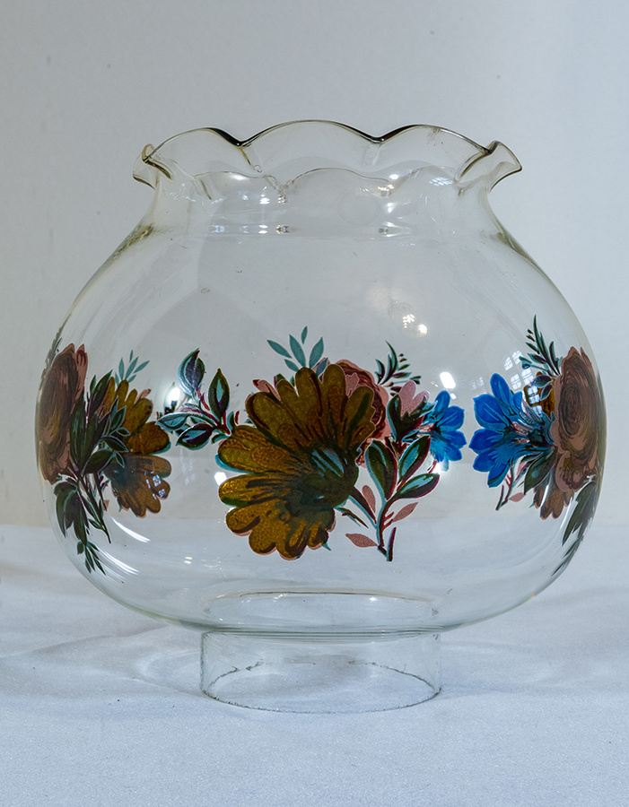 - Szklany klosz lampy, malowany w kwiaty, Francja, Bayeaux – Valentine (?), 2. połowa XIX wieku; szkło, farby naszkliwne; nr inw. MPK/CS/2212